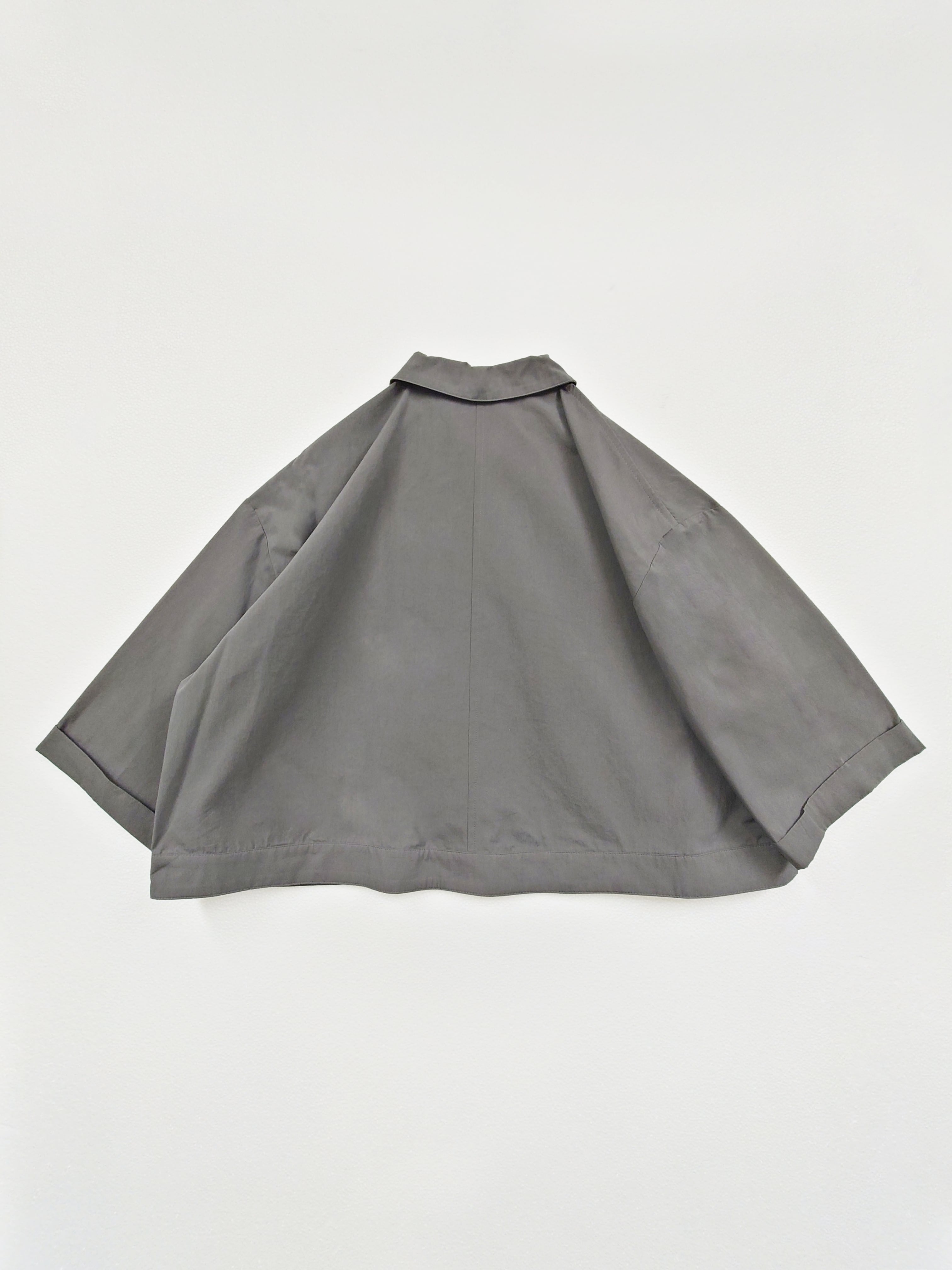 つまり気味の襟にワイドな身巾でメンズライクなデザインにしつつ、