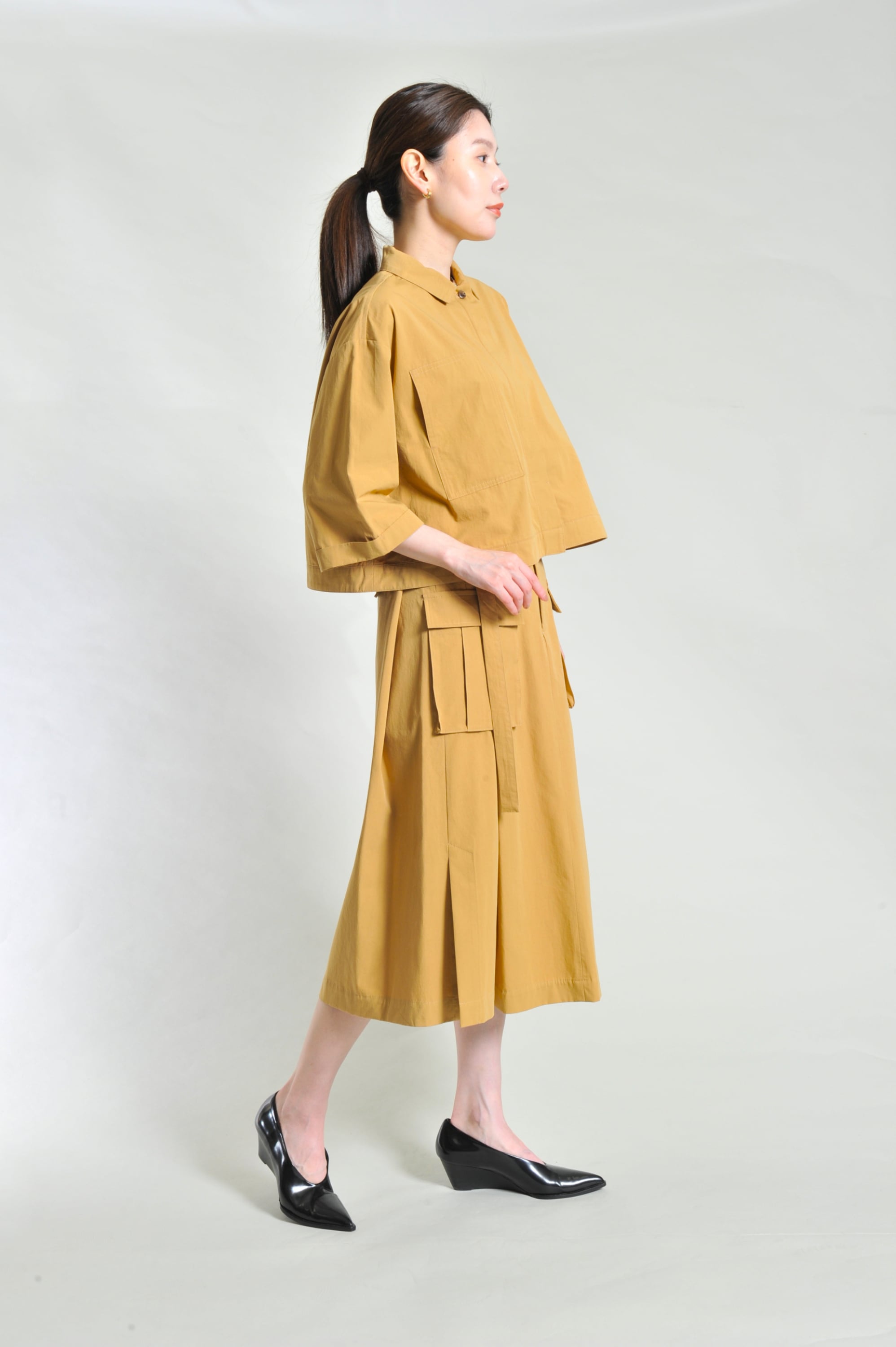 しっかりめのコットン生地を使用しナチュラル感を抑えた1枚です。