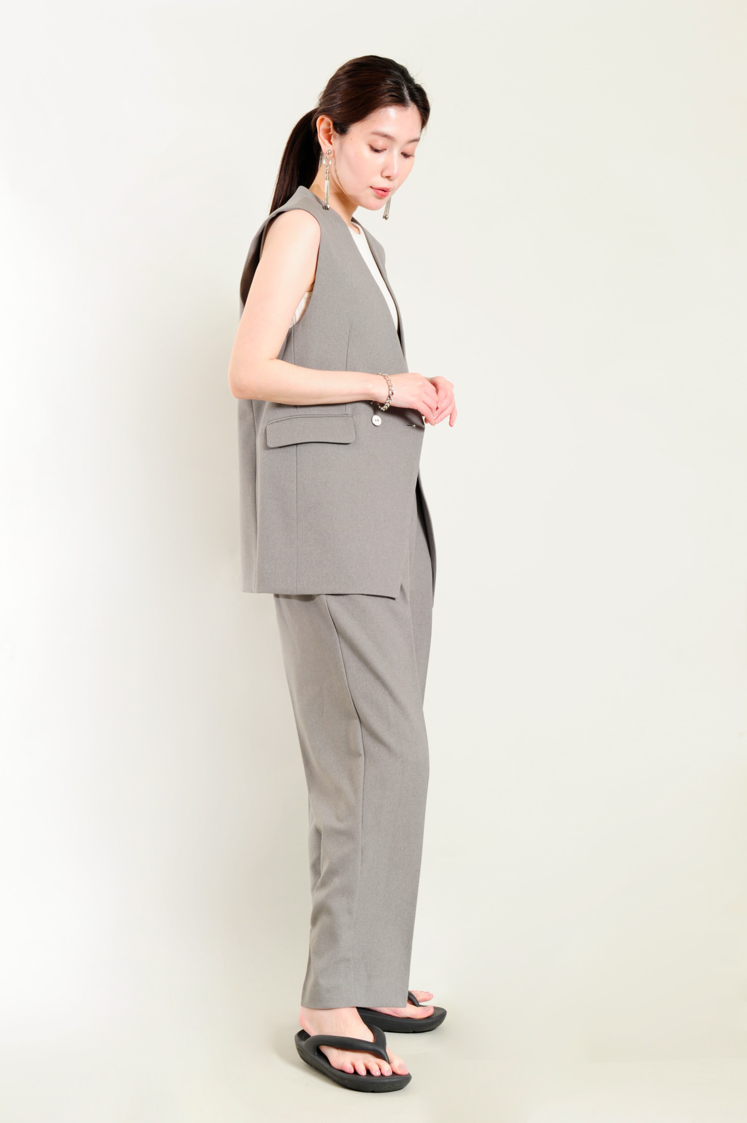 Vネックベストは、シンプルでおしゃれなアイテムです。ブルゾンの中に羽織るだけで、コーディネートにアクセントを与えてくれます。細身のシルエットがスタイリッシュで、Vネックが女性らしい印象を与えます。様々なスタイルに合わせやすく、着回し力も抜群です。